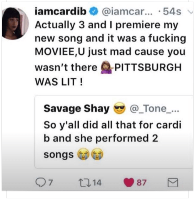 Sunday night, October 15th, local deejay Solo Dolo, radio host Mike Dean, Eric Fisher, just to name a few, brought to the city of Pittsburgh at Club Xtanza for entertainment Cardi B. Anticipation was intense that evening as I pulled up, I looked down Smallman street and seen a line that wrapped around the block for both VIP and general admission. Of course I had to do presale VIP couldn’t, beat the price nor the fact that I didn’t have to wait in line…yay!!